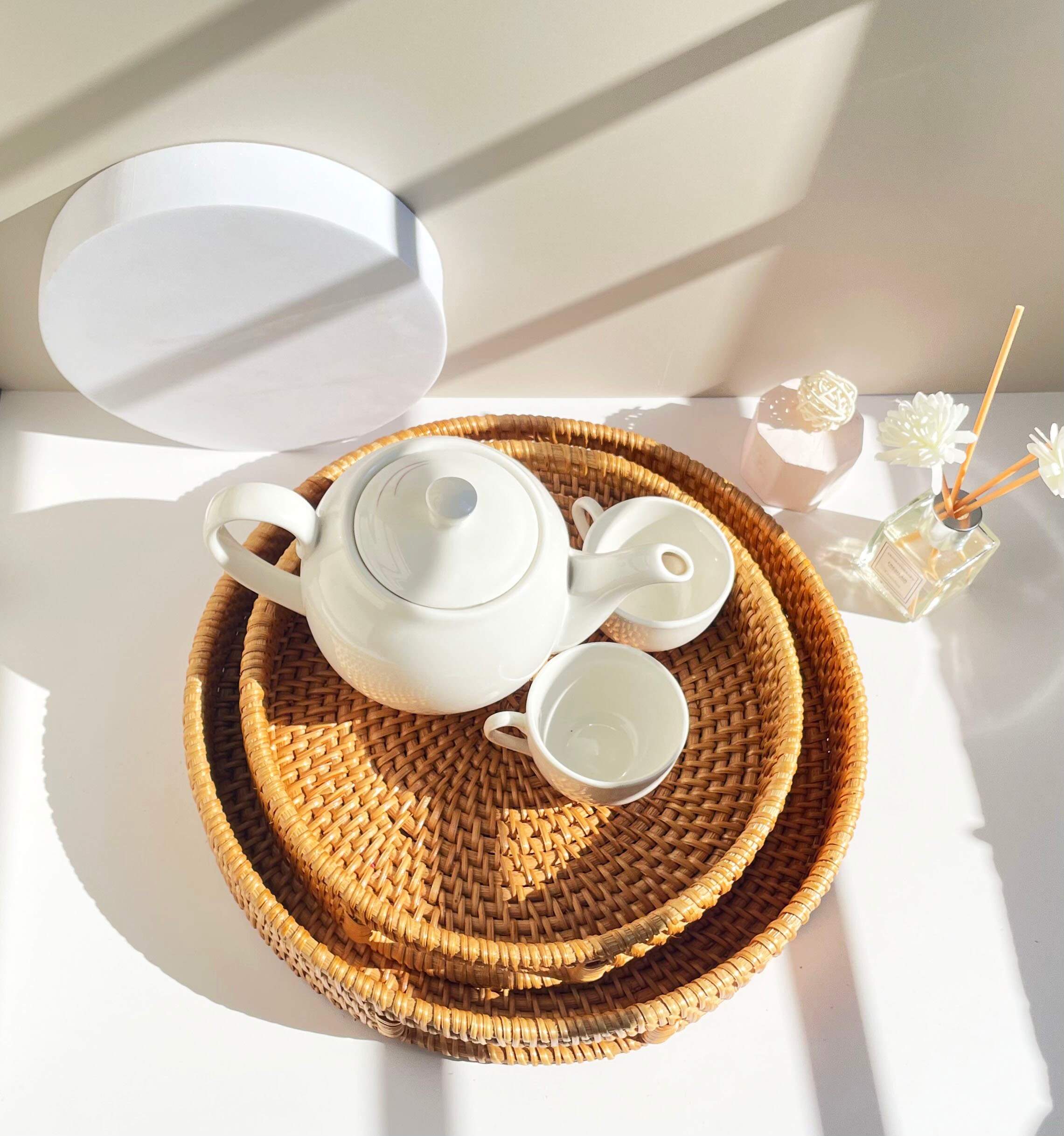 𝐃𝐮𝐫𝐚𝐛𝐥𝐞 𝐚𝐧𝐝 𝐒𝐮𝐬𝐭𝐚𝐢𝐧𝐚𝐛𝐥𝐞: Crafted from high-quality, sustainable materials, our small rattan tray is not only beautiful but also built to last. This round woven tray is a versatile and eco-friendly choice for any home.
